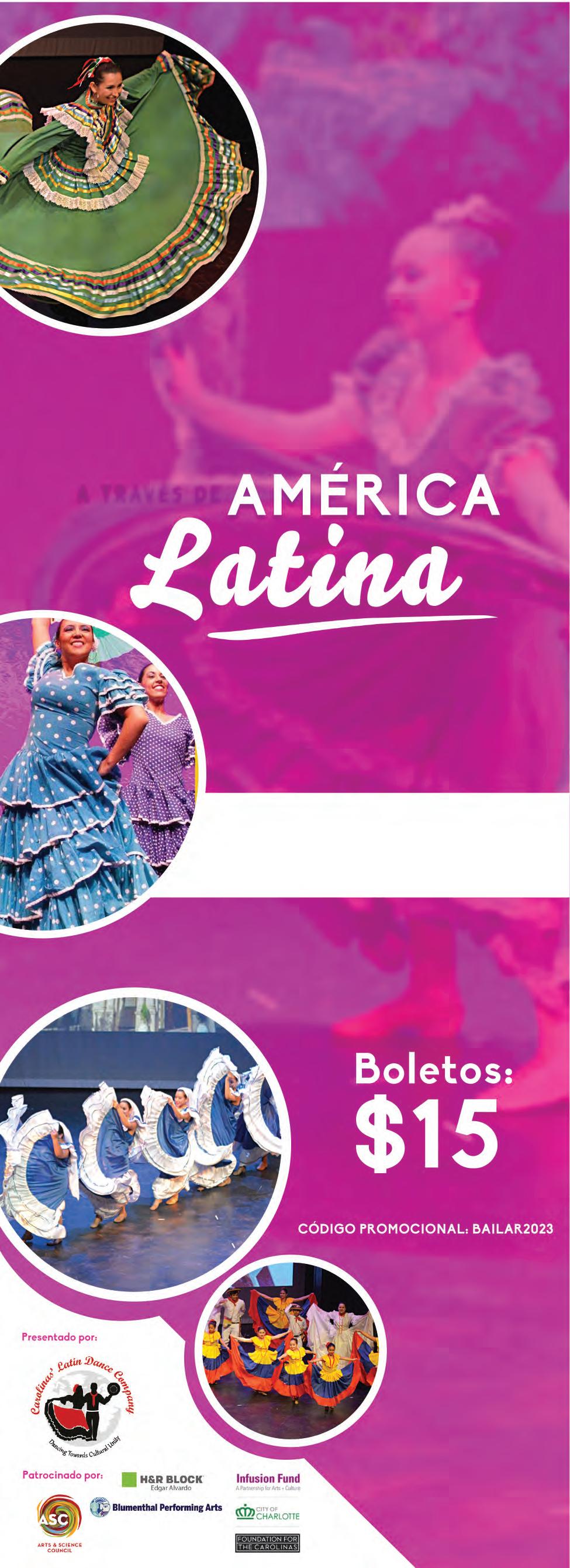 Teatro Booth Playhouse 130 N. Tryon St. (adentro de Founder Hall) Charlotte, NC 28202 MARZO 25, 2023 7:00 PM Una experiencia cultural de música y bailes folclóricos