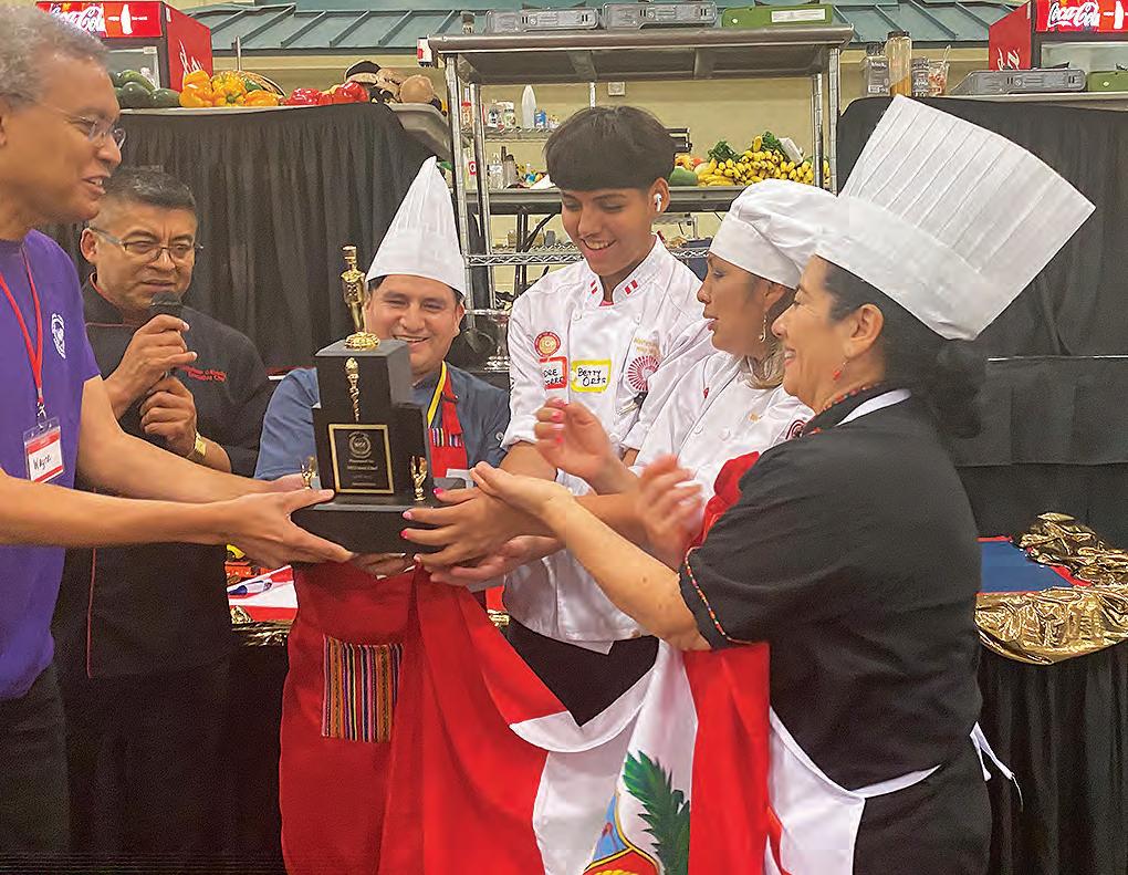 Primer lugar Perú: Con su lomo saltado, pisco sour de maracuyá y pionono de chocolate. El equipo conformado por los chefs peruanos Betty Ortiz, Judy Caballero, Oscar Vasquez y Andre La Torre superó la semifinal con el ceviche.