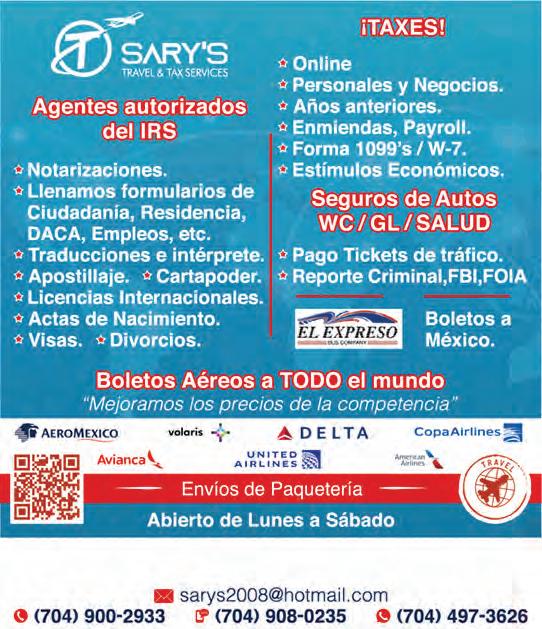 LaNoticiaPorEmail.com Suscríbete al newsletter Area de Charlotte Todos los miércoles FREE/GRATIS 17 al 23 de abril del 2024 Año 28 • Nº 1357 704-568-6966