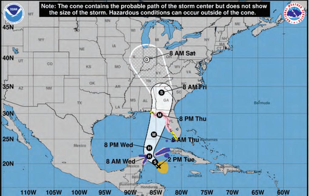 través del Canal de Yucatán antes de entrar al Golfo de México. Luego, girará hacia el norte, amenazando principalmente la costa oeste de Florida, incluida el área de la Bahía de Tampa.