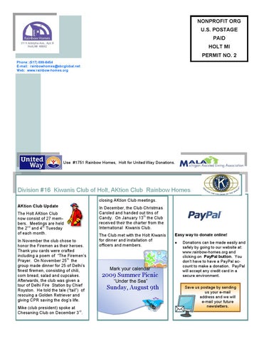 NONPROFIT ORG U.S. POSTAGE PAID HOLT MI PERMIT NO. 2 Phone: (517) 6998454 Email: rainbowhomes@sbcglobal.net Web: www.rainbowhomes.org