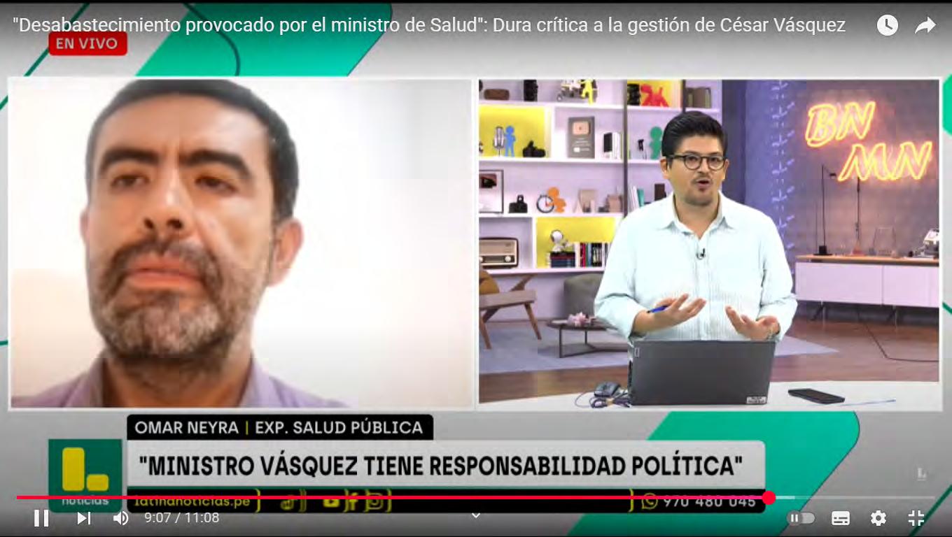 El doctor Omar Neyra, el especialista en salud pública, señala cuales son las posibles medidas que el Gobierno puede tomar para poder garantizar la salud de los peruanos. Además hace una dura crítica a la gestión del ministro de Salud César Vásquez tras los hechos que desencadenaron la aplicación de suero fisiológico defectuoso.