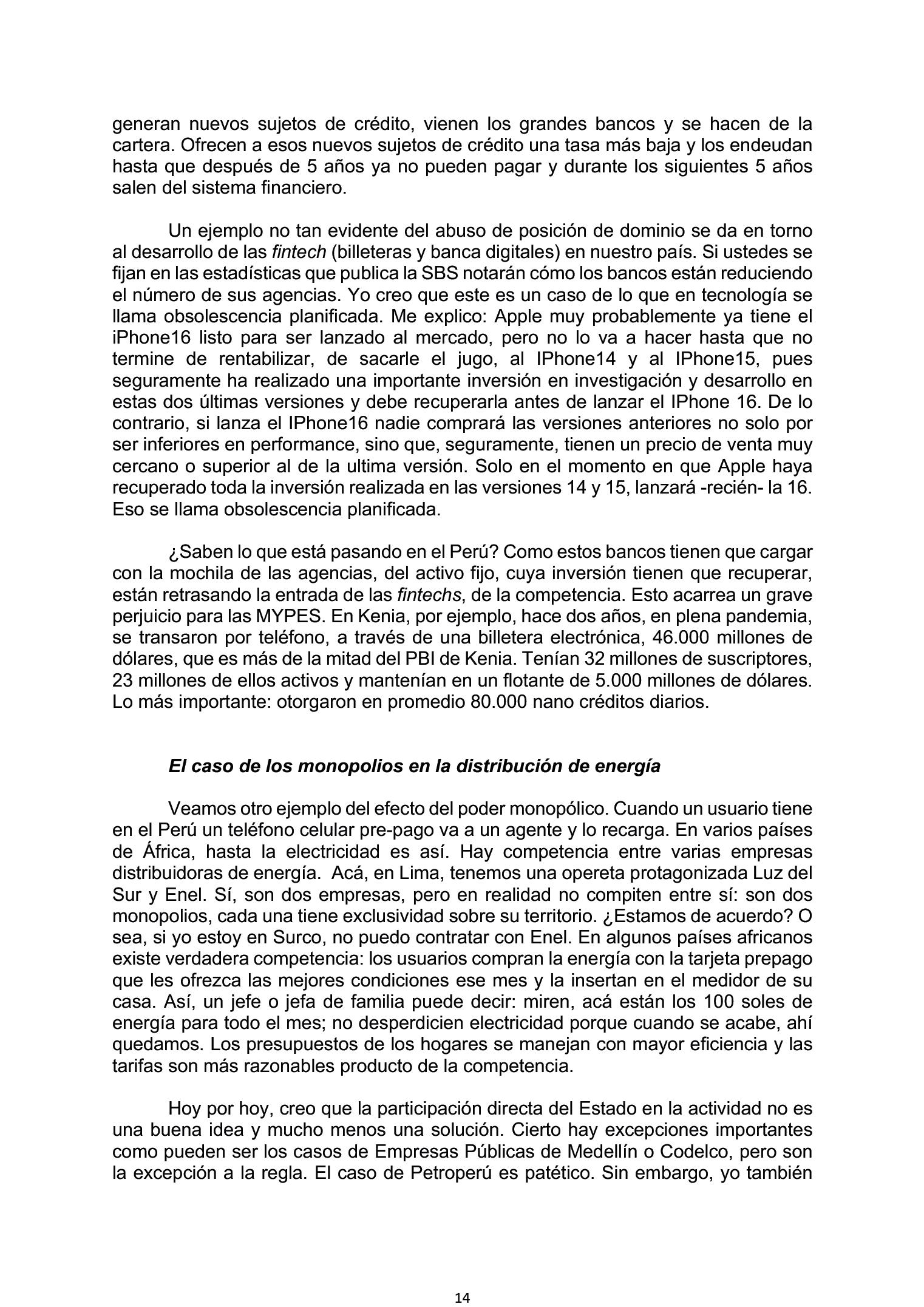 pera por la fuerza de su gente pero que no encuentra un gobierno capaz de darle garantías ni estabilidad política para generar un clima de confianza; y ni mencionar la sensación de desgobierno, la tenue presencia del principio de autoridad que hace que el estado de derecho se vea vulnerado al punto que nos desborda el narcotráfico, minería, tala y pesca ilegal e informal, trata de personas, contrabando, etc.