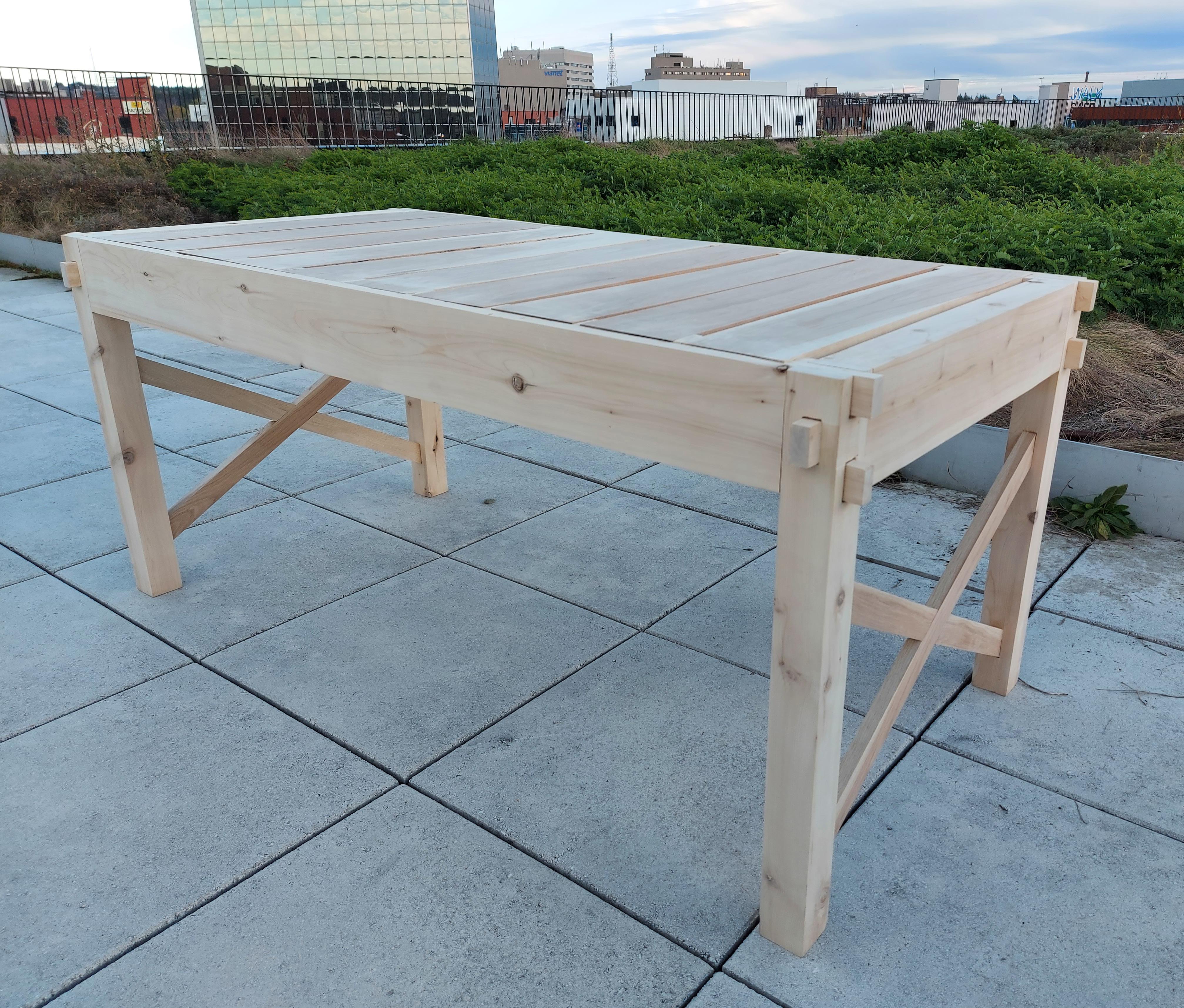 Construction: Mortise and tenon joints for the legs Hook and pull joint for the surface
