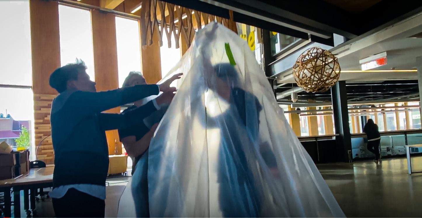 The portal is built by connecting two sizes of bubble structures, a bigger general space and a smaller private space, so that it allows children to choose the spaces they feel comfortable with.