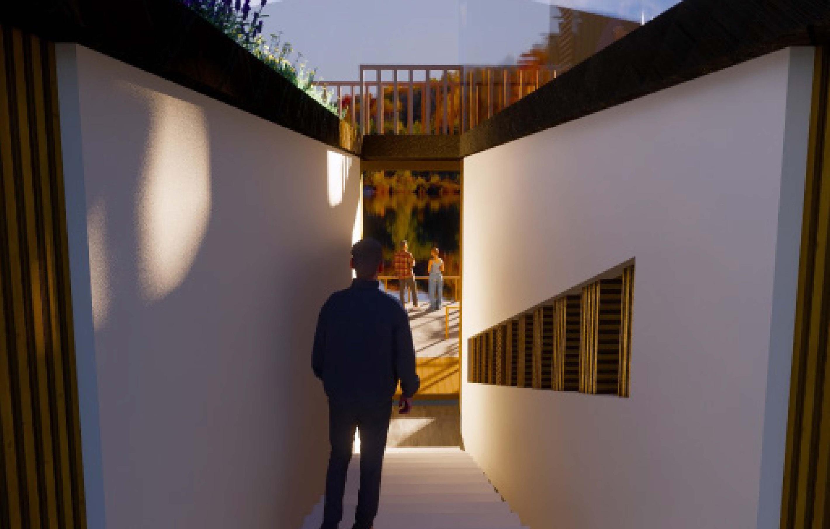 The Laurentian forest is a new forest that was regenerated a few decades ago. It is necessary to pay attention to nature and create a connection between the forest and the sauna and make the structure respond to nature.