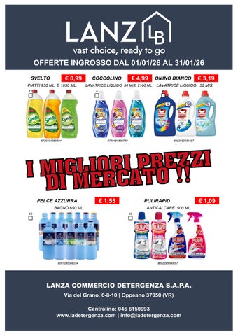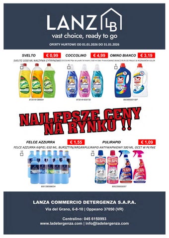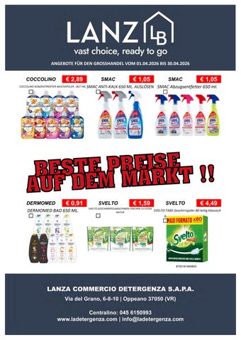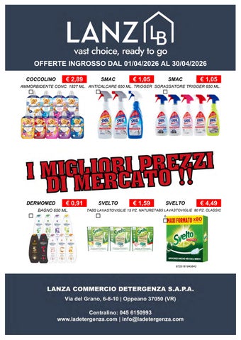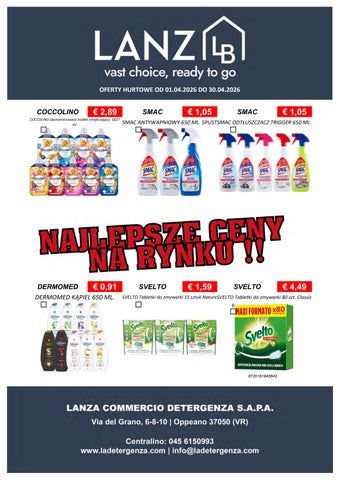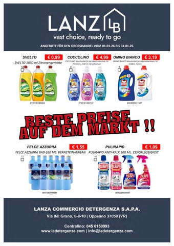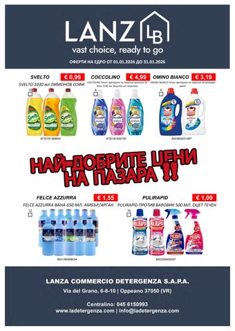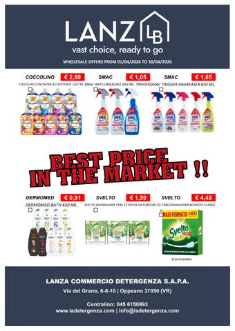 Fondata nel 1967, Lanza Commercio Detergenza s.a.p.a. è specializzata nella distribuzione all'ingrosso di prodotti di detergenza, igiene, casa, cura persona e petfood. Founded in 1967, Lanza Commercio Detergenza s.a.p.a. specializes in the wholesale distribution of detergent, hygiene, home, personal care and petfood products.