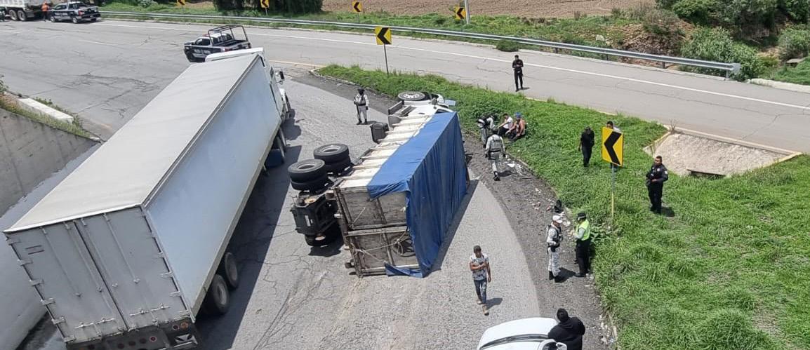 EMPOALA, Hgo. – Tres heridos y daños materiales dejó la volcadura de un camión carguero en la carretera Pachuca-Ciudad Sahagún a la altura del retorno de Acelotla.