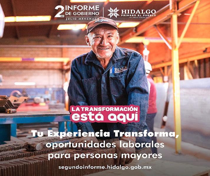 Gracias al programa “Tu Experiencia Transforma”, se han reintegrado más de 267 personas adultas mayores de Hidalgo a la vida laboral, invirtiendo 9 millones de pesos en servicios, educación, salud, textil y agrícola.
