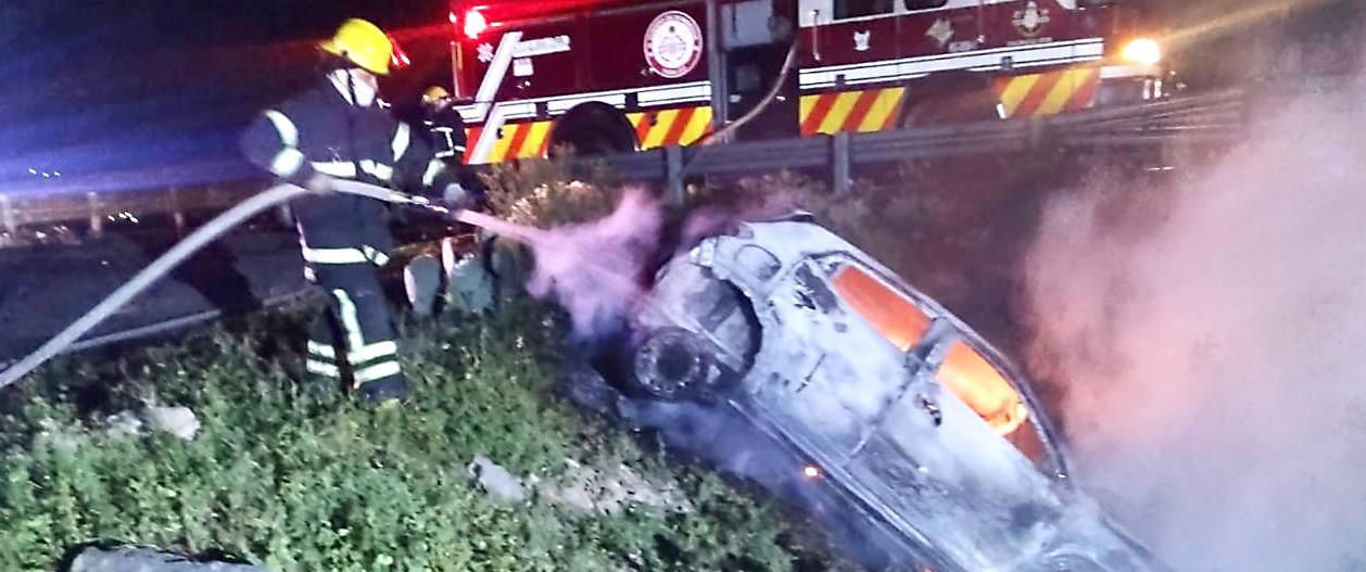 EPAZOYUCAN, Hgo. - Elementos del H. Cuerpo de Bomberos lograron controlar y sofocar un incendio registrado en un vehículo particular, el cual circulaba sobre el kilómetro 17 de la carretera Pachuca – Tulancingo, a la altura del municipio de Epazoyucan.