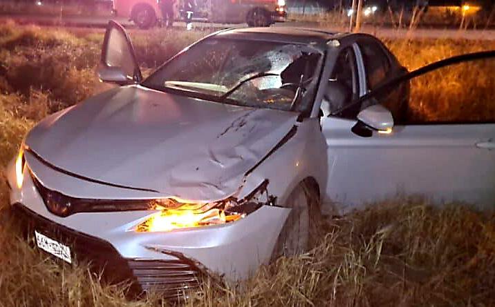de distancia, las autoridades localizaron un vehículo blanco, marca Toyota Camry, con un fuerte golpe en la defensa del lado del conductor; y el parabrisas quebrado, que lo implica como posible involucrado y probable responsable del percance.