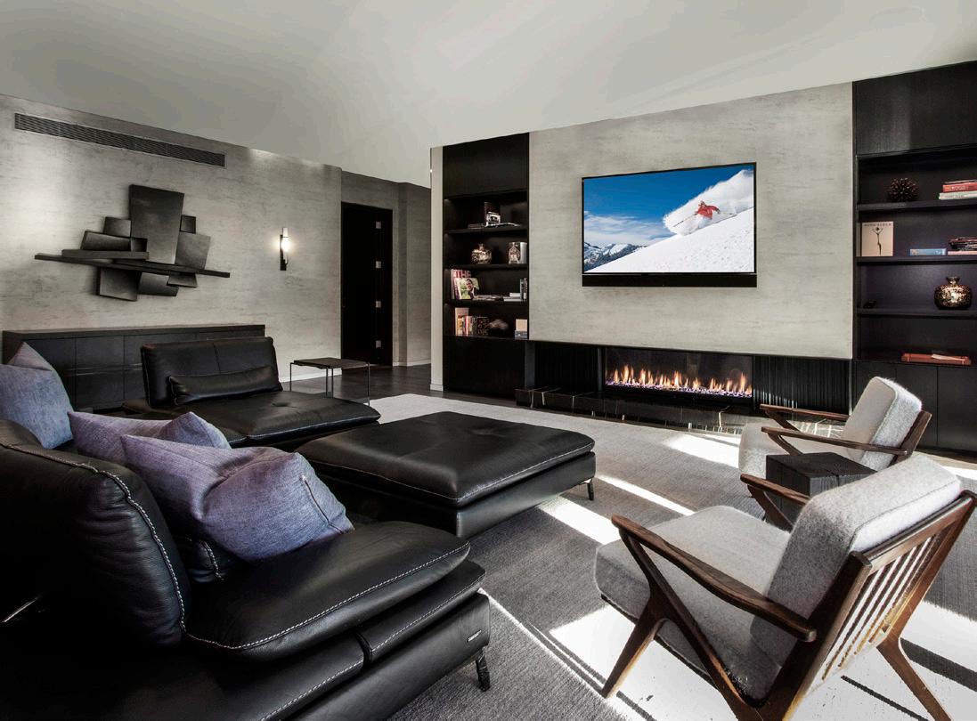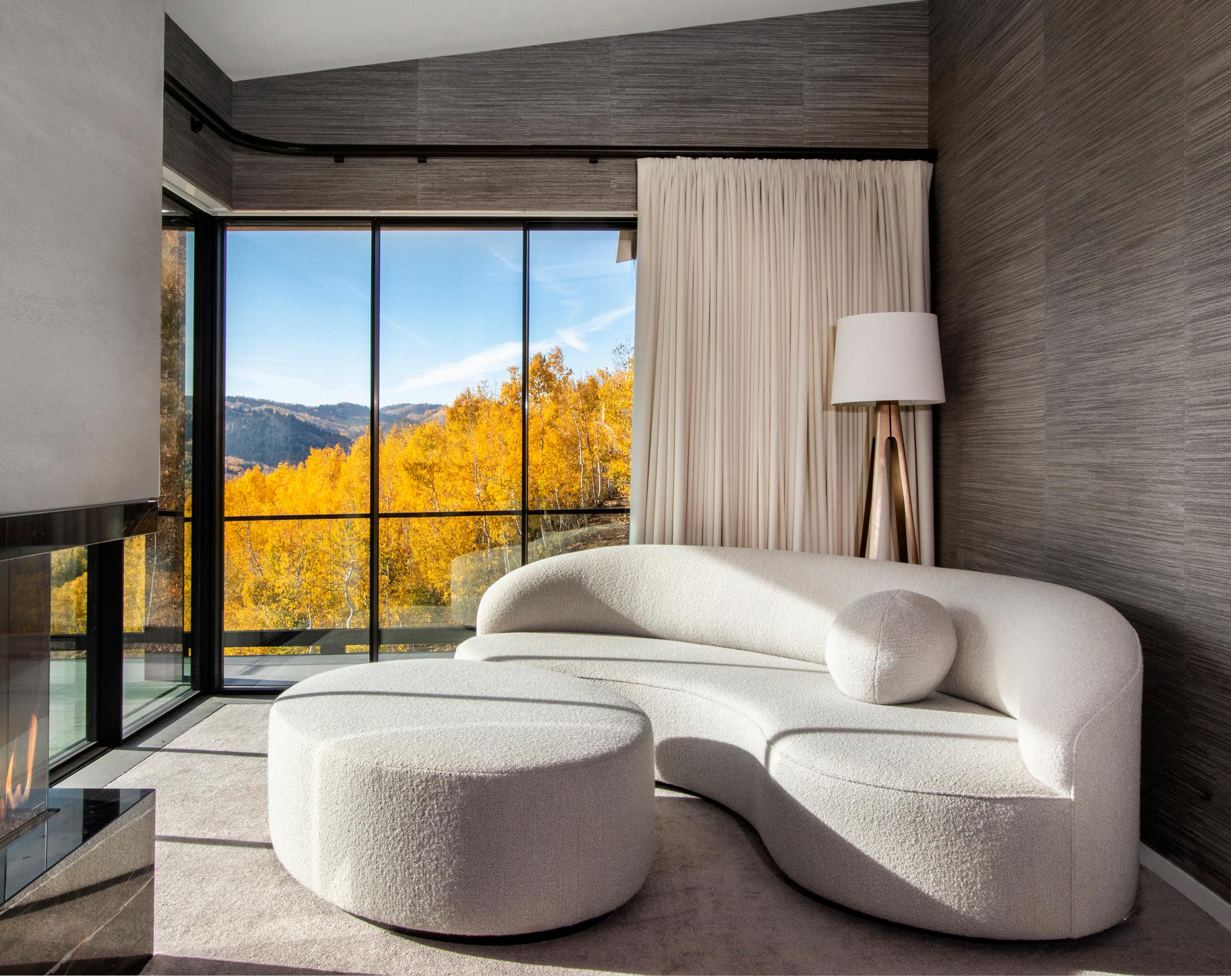 Every inch of this home showcases bespoke touches, from the handcrafted, solid wood doors with hardware from Rocky Mountain Hardware and Sun Valley Bronze, to the custom furniture and handwoven rugs. Many of the rugs, designed by Shear and the owners, were meticulously hand-sewn, pixel by pixel, to create a truly one-of-a-kind living experience.
