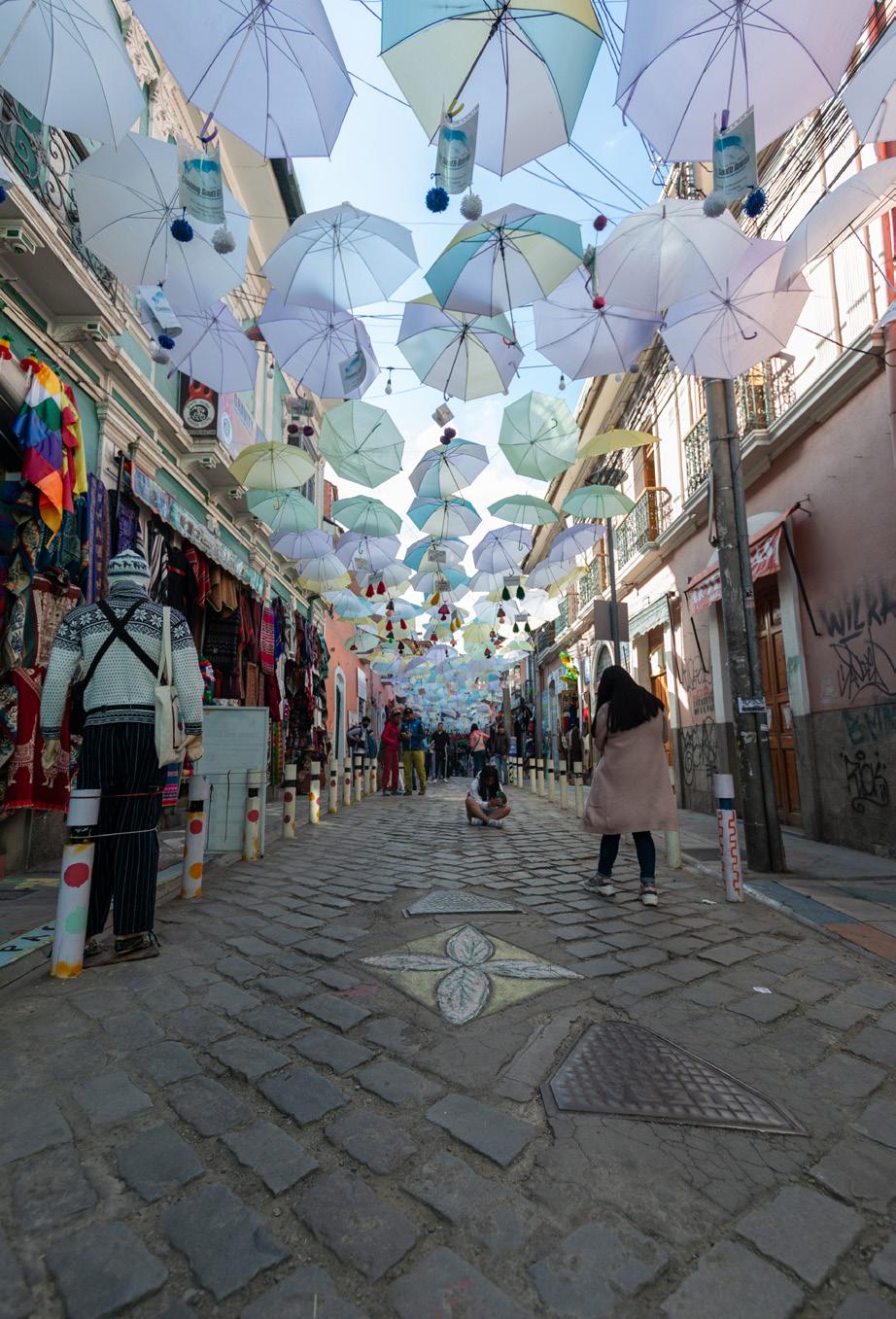 WSagárnaga street was always the main street for tourists to visit, now several months ago it is Linares street that has been standing out in photos and videos of hundreds of people, being the favorite setting for its arrangement of colorfull umbrellas that all together resembles a ceiling and stands out next to warm lights from the craft market. Little by little the neighbors, artisans and business owners continue to add more details giving color to the sector. This way, the Umbrella´s Street, as many people say, has became an attractive representation for tourists and visitors in general.