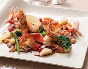 Insalata di asparagi bianchi e verdi con 3 ovetti di quaglia e petto d’oca affumicato