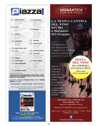 ANNO 24 - N° 518 DELL’01 APRILE 2016 TIRATURA 13.500 COPIE Direttore responsabile: Eros Maccioni • Editrice: la Piazza Stampa e legatoria: Chinchio Industria Grafica Srl • Grafica: la Piazza Autorizz. Tribunale di Bassano del Grappa n°7/94 del 7/10/94