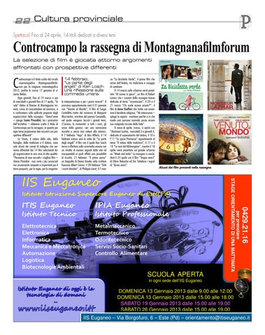 DOMENICA 13 Gennaio 2013 dalle 9.00 alle 12.00 DOMENICA 13 Gennaio 2013 dalle 15.00 alle 18.00 SABATO 19 Gennaio 2013 dalle 15.00 alle 19.00 SABATO 26 Gennaio 2013 dalle 15.00 alle 19.00 IIS Euganeo â Via Borgofuro, 6 â Este (Pd) â orientamento@itiseuganeo.it