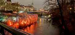 avveniristica “zattera” d’arte e d’acciaio creata sul fiume.