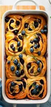 Si forma una rosa e si mette in uno stampo imburrato. Si continuano ad accoppiare i fogli intorno alla rosa principale, spennellando con burro fuso. Si inforna a 180°C per 15 minuti. Dopo la prima cottura, si versa la pastella preparata, si aggiungono i mirtilli e si prosegue la cottura per 25-30 minuti. Lasciare intiepidire prima di servire.