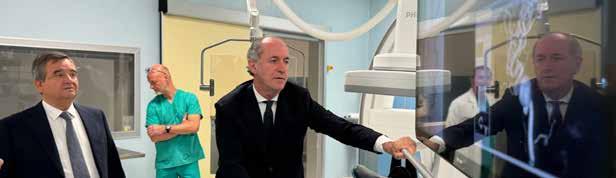 dell’intera rete ospedaliera dell’Ulss 3, garantendo standard elevati su un territorio molto esteso. Parallelamente, la nuova piastra angiografica, realizzata con un investimento di 3,2 milioni di euro e completata in 14 mesi, offre un avamposto tecnologico d’eccellenza per le attività di cardiologia interventistica, neuroradiologia e radiologia interventistica. Dotata di sei angiografi di ultima generazione – tra cui un angiografo biplano e un portatile – la struttura di 1.300 metri quadrati al piano -1 consente di effettuare procedure diagnostiche e interventistiche complesse e di alta specializzazione, coprendo un ampio bacino provinciale, con particolare attenzione alle emergenze tempo-dipendenti come ictus e infarto. Gli interventi sono stati pianificati per non interrompere le attività cliniche, dimostrando una capacità organizzativa di alto livello che ha permesso la contemporanea realizzazione delle opere e la continuità dei servizi. ,Il presidente Zaia ha ribadito come l’ospedale dell’Angelo confermi il proprio ruolo di presidio sanitario di eccellenza regionale, mentre il direttore Contato ha evidenziato l’importanza delle tecnologie innovative e del personale specializzato nel preparare la struttura ad affrontare le sfide sanitarie del futuro. Il sindaco Brugnaro ha ringraziato il personale per l’impegno quotidiano, sottolineando il valore concreto degli investimenti per la salute della comunità.