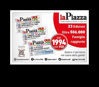 È un periodico formato da 23 edizioni locali mensilmente recapitato a 506.187 famiglie del Veneto. Direzione, Amministrazione e Concessionaria di Pubblicità Locale: via Lisbona, 10 · 35127 Padova tel. 049 8704884 · fax 049 6988054 >redazione@givemotions.it< >www.lapiazzaweb.it< Redazione: Direttore responsabile Nicola Stievano >direttore@givemotions.it< Redazione >redazione@givemotions.it< è una testata giornalistica di proprietà di Srl Periodico