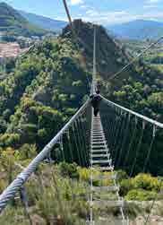 Rocco Petrone, l’ingegnere della Nasa che progettò la rampa di lancio dell’Apollo 11 e scandì il countdown durante il primo sbarco dell’uomo sulla Luna nel 1969. Sasso oggi deve la celebrità al suo ponte “tibetano” - il Ponte alla Luna - sospeso su corde d’acciaio, su cui si cammina a cento metri d’altezza con davanti (e sotto) un panorama da vertigine, anche emotiva. Poi in osteria dall’adrenalina si passa ai sapori più autentici di questa zona.