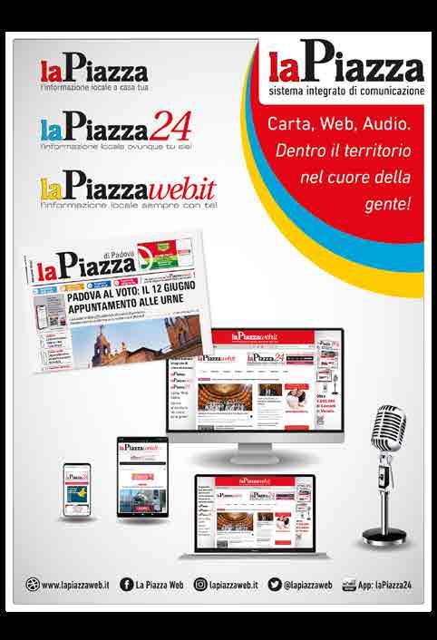È un periodico formato da 23 edizioni locali mensilmente recapitato a 506.187 famiglie del Veneto. Direzione, Amministrazione e Concessionaria di Pubblicità Locale: via Lisbona, 10 · 35127 Padova tel. 049 8704884 · fax 049 6988054 >redazione@givemotions.it< >www.lapiazzaweb.it< Redazione: Direttore responsabile Nicola Stievano >direttore@givemotions.it< Redazione >redazione@givemotions.it< è un marchio proprietà di Srl Periodico fondato nel 1994 da Giuseppe Bergantin Centro Stampa: Rotopress International via Brecce · Loreto (An) Chiuso in redazione il 14 novembre 2022