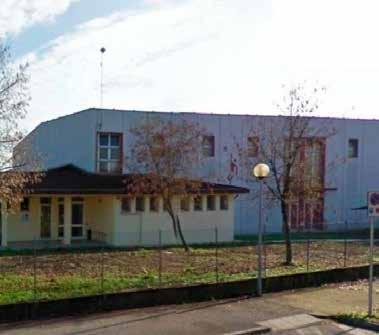 La palestra è della fine degli anni ‘80 con copertura in capriate reticolari e copponi di cemento armato vibrato