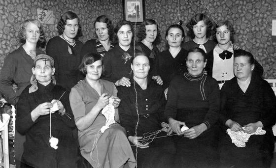 Kuva 54. Tiistaiseuran poseerauskuva Eturivissä keskellä istuu Marina Takalo, tunnettu runonlaulaja, jonka kunniaksi on Kemissä nimetty Marina Takalonkatu Kuva KSS Kemi