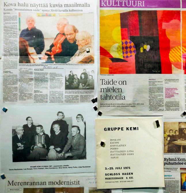 tunnettuja tekijöitä, jotka olivat pitäneet yksityisnäytte lyitä pääkaupungissa sekä osallistuneet Taideakatemian vuosinäyttelyihin ja pohjoissuomalaisten yhteisnäyttelyihin Suomessa ja Ruotsissa Ryhmä Kemin jäsenet kuuluivat edelleen Kemin taideyhdistyksen kuvataidejaostoon (Emt 2007, 33 –34, 43 )