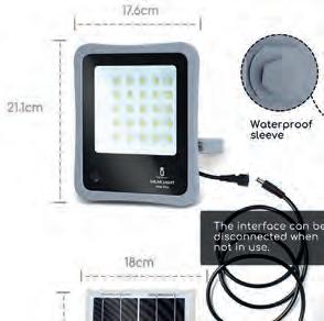 APPLIQUE A LED AD ENERGIA SOLARE Ricaricabile ad energia solare, batteria da 3.7V 1200mAh, luce fredda, Flusso luminoso: 120lm, grado di protezione: IP65