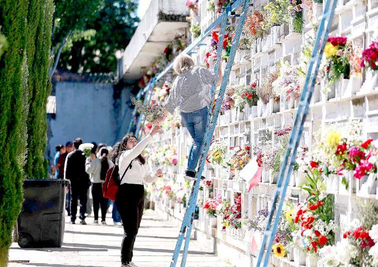 Subidas en escaleras, familiares subieron para dejar arreglos florales y limpiar los nichos donde descansan sus seres queridos.