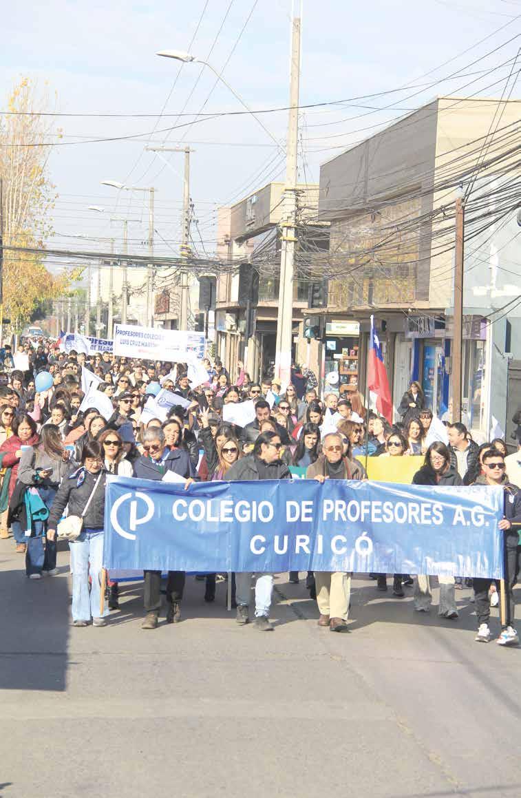 Por el sector céntrico de la comuna de Curicó, los docentes marcharon para exigir una solución a sus peticiones.