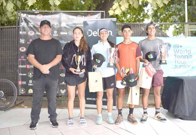 TALCA. Con dos disputadas finales terminó ayer el Torneo Internacional de Tenis J30, que se disputó en las canchas del Club de Tenis de Talca. El evento deportivo contó con la participación de tenistas menores de 18 años de Chile, Bolivia, Brasil, Argentina, Estados Unidos, Ecuador, Perú, Argentina y México, además de un tenista ruso y tuvo el patrocinio de diario La Prensa.