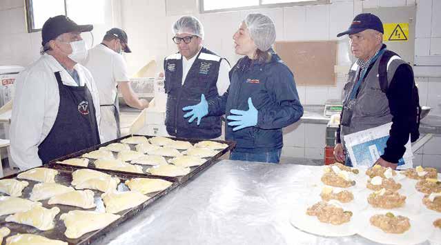 La seremi de Salud, Carla Manosalva, en compañía de equipos de fiscalización, revisaron en detalle las condiciones sanitarias de producción de empanadas de pino en Talca.