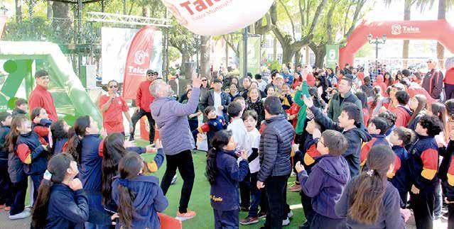 ENTRETENIDA JORNADA. Estudiantes de algunos establecimientos educacionales participaron en diversos juegos, concursos y activaciones, además de recibir balones de fútbol y entradas para asistir a partidos en el Estadio Fiscal de Talca.