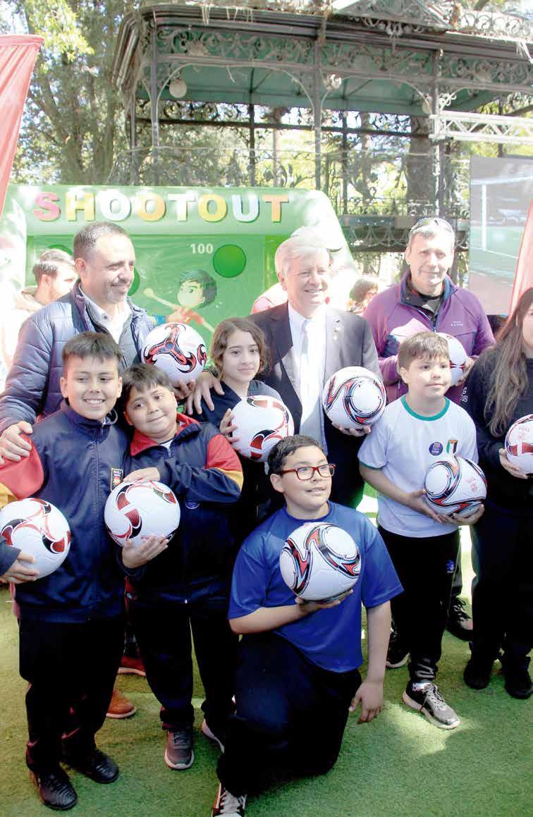 CURICÓ. La Plaza de Armas fue el lugar escogido para la realización de un nuevo Fan Fest, actividad destinada a promocionar el Mundial Sub-20 de Fútbol, en lo puntual, la subsede más al sur de nuestro país de dicho evento deportivo: el estadio Fiscal de Talca. En su calidad de alcalde anfitrión, George Bordachar, estuvo acompañado por el jefe de gabinete del municipio de Talca y consejero regional, Juan Andrés Muñoz; el consejero regional, Igor Villareal y el gerente de la Corporación de Deportes de Curicó, Matías Avendaño. Los más contentos fueron los estudiantes de algunos de los establecimientos administrados por el DAEM, quienes participaron de diversos juegos, concursos y activaciones, además de recibir balones de fútbol y entra-