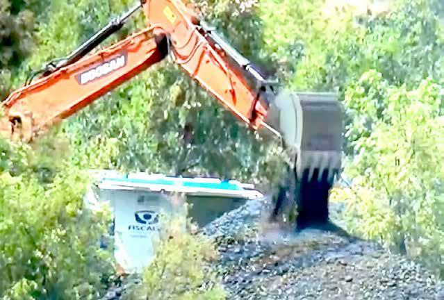 Cerca de la orilla del Río Loncomilla, en una zona que antes estaba tapada por el agua, a 20 metros del punto cero, comenzó peritaje en la zona, con una retroexcavadora, para dar con objeto de gran envergadura que estaría a 12 metros de profundidad.