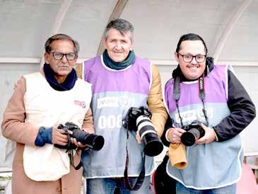 Carlos junto a Manuel Espinoza, fotógrafo de nuestro diario La Prensa y Sebastián Dinamarca, de Punto Lontué, en uno de los partidos que Curicó Unido ha jugado en Molina.