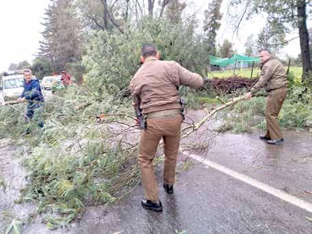 SAN CLEMENTE. Debido al sistema frontal que afecta a la región y mientras carabineros de San Clemente realizaba un patrullaje preventivo por la ruta K- 579, que une el sector de Mariposas con San Clemente, se encontraron con la caída de dos árboles, por lo que los funcionarios procedieron a realizar el despeje de la vía para el normal tránsito de los vehículos.