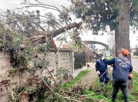 na de soldados, que están preparados para atender cualquier eventualidad. En este sistema frontal solo se reportaron caídas de árboles y el desprendimiento de la techumbre de una iglesia evangélica, en la localidad de Rancura.