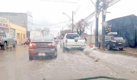 el centro de la comuna, también se vio afectado por el sistema frontal. Avenida Camilo Henríquez, Balmaceda y O’Higgins, fueron de las arterias donde más se acumuló agua, por lo que los conductores debieron manejar con mucha precaución. Ese mismo problema se repitió en la periferia de la ciudad como, en avenida Circunvalación (frente al Colegio Administración y Comercio), avenida Rauquén, calle Bombero Garrido, ca -