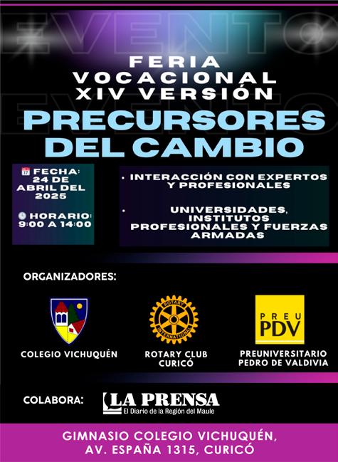 Audiciones Corales. El Instituto Chileno Norteamericano de Cultura de Curicó busca nuevos integrantes para su coro juvenil Uniendo Voces. La invitación es para hoy martes 15 de abril, a las 17:00 horas, en calle Estado #563. Más información en +56-9-34959725, +56-9-53035731.