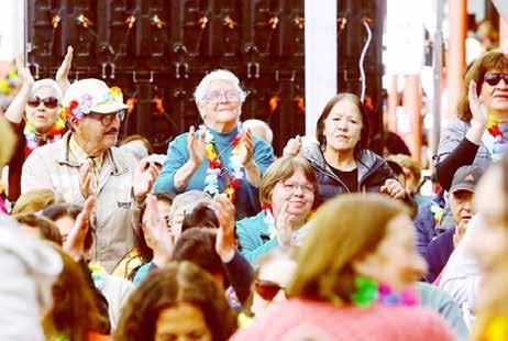 El espectáculo consideró artistas locales que hicieron bailar y cantar a los adultos mayores, en grato ambiente festivo.
