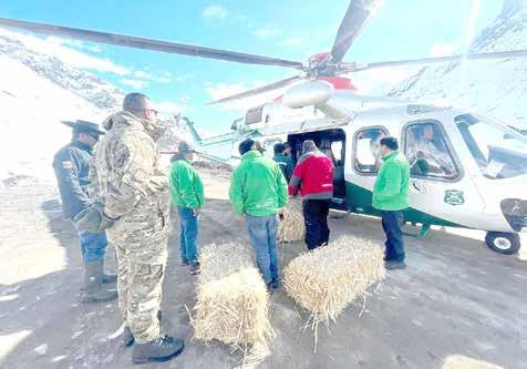 brevuelo, para marcar los lugares donde estaba el ganado y llevar fardos de pasto. De manera paralela, personal del GOPE ingresó también en las motos de nieve y junto con personal militar, marcaron huellas para permitir que por esas rutas los guiadores puedan traer de regreso sus rebaños.