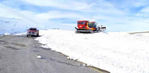 las palas barre nieve en la calzada del kilómetro 141 que bordea la Laguna del Maule. En ese sector, que goza de una espectacular panorámica con la mitad del agua congelada, los operarios retiran la nieve que en algunos tramos supera los dos metros de altura.