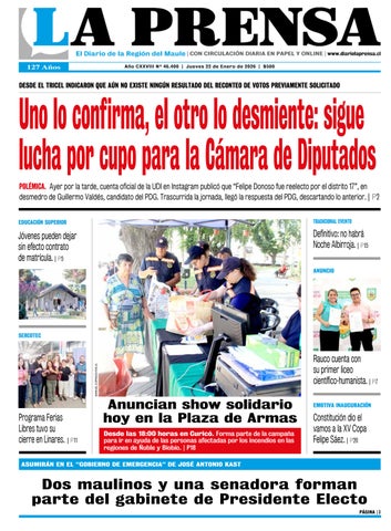 El Diario de la Región del Maule | www.diariolaprensa.cl | Año CXXI Nº 44.125 | Sábado 19 de Octubre de 2019 | $ 300