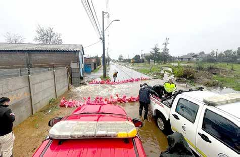 se una importante cantidad de agua, transformándose en una verdadera laguna, poniendo en peligro a varias casas de la población Curicó. De hecho, como el tránsito de vehículos generaba un problema mayor, por el constante movimiento de las aguas, se tomó la decisión de interrumpir dicha circulación, justo a la altura de la curva frente al ingreso a la Medialuna de Curicó. Gracias a motobombas, personal del municipio comenzó a retirar el agua que se había acumulado en varios pasajes de la aludida población. Junto con ello también se colocaron varios sacos de arena.