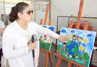 personas no videntes y sus familiares, personas con discapacidad física y algunas autoridades. En ella, dos jóvenes ciegos recitaron un par de textos en escritura braille y se expusieron los textos y cuadros.