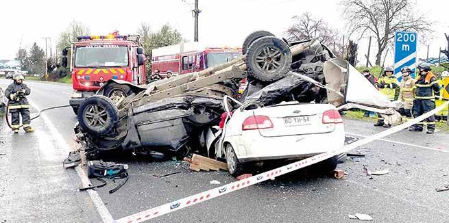 PARRAL. Cuatro personas fallecidas fue el saldo de un violento accidente de tránsito en el kilómetro 351 de la Ruta 5 Sur, a la altura de Parral.