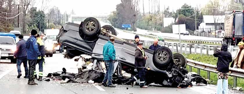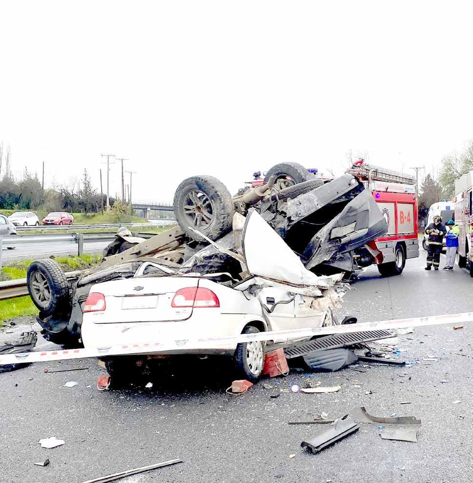 vil colisionaron a alta energía. El comandante del cuerpo de Bomberos de Parral, Mauricio Araya, indicó que el impacto se produjo cuando “una camioneta que hacía su desplazamiento de norte a sur, pasara la barrera de contención y cae sobre otro vehículo que